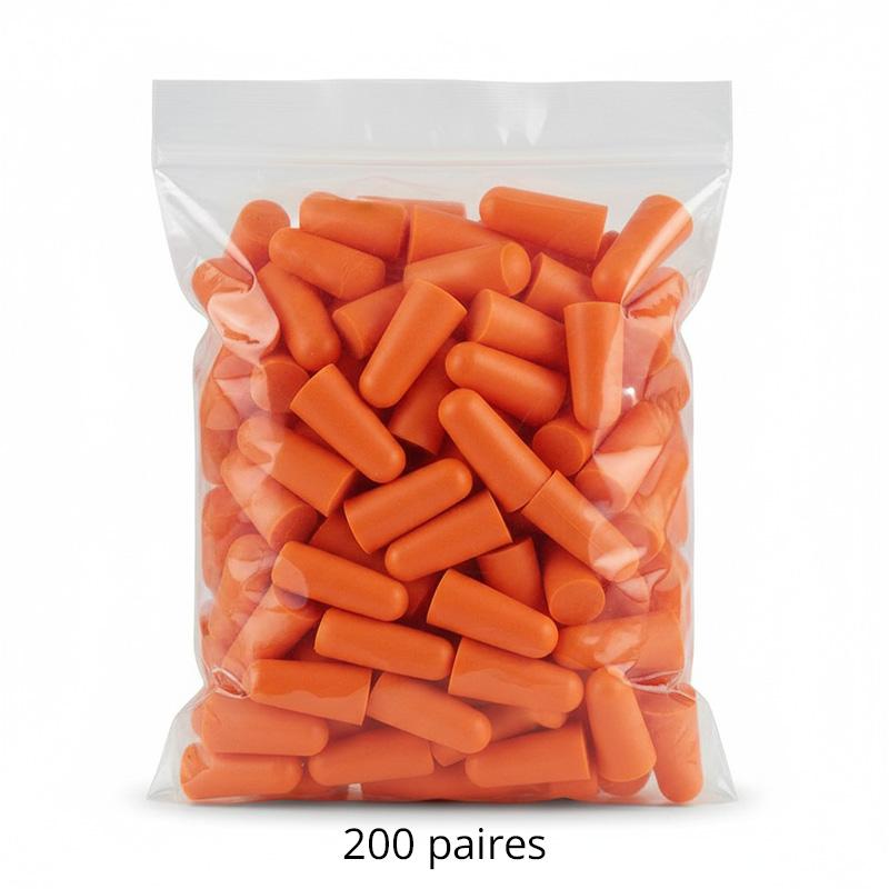 Protection auditive maximale avec une atténuation de 34 dB et confort sans latex, idéal pour une utilisation prolongée, vendu en paquets pratiques de 200 paires.