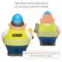 Bert® de MBW®, le magasinier anti-stress, est l’allié idéal pour soulager la pression au travail. Avec son gilet jaune fluo à bandes réfléchissantes, son pantalon bleu foncé et son casque de sécurité bleu, il incarne la rigueur logistique. Sous un bras, une imprimante de codes-barres, sous l’autre, un planificateur de stocks, prêt à tout organiser.