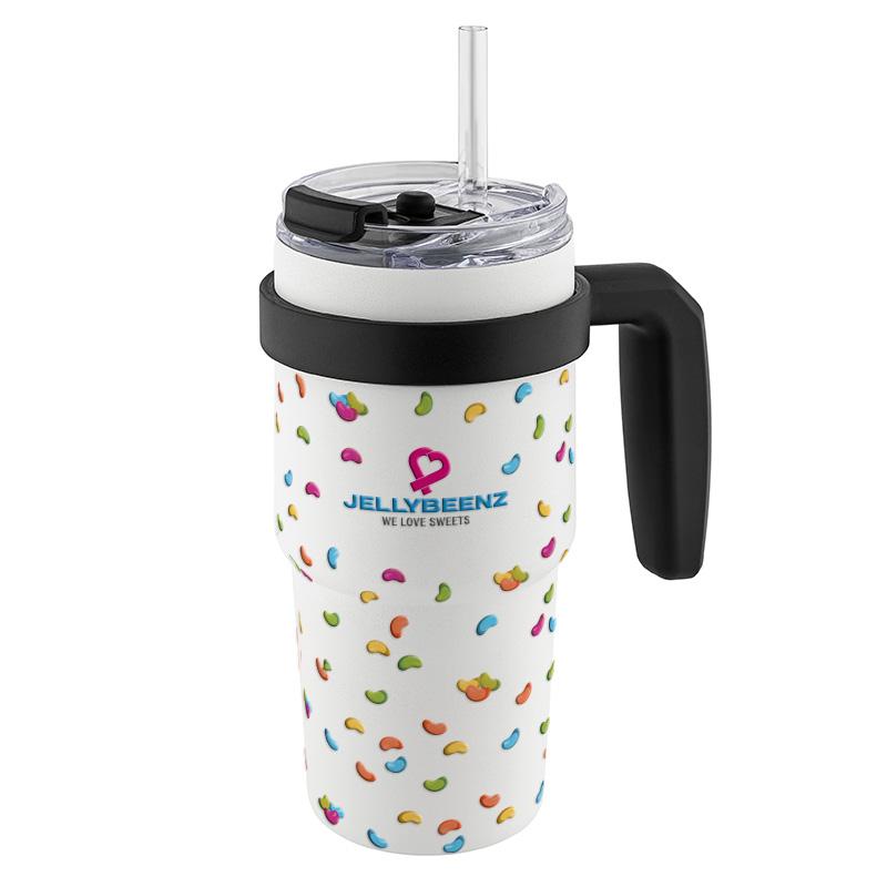 L’intérieur en céramique préserve le goût des boissons sans altération, tandis que son couvercle anti-fuite avec ouverture rabattable assure une manipulation sécurisée. La poignée amovible et la paille en plastique incluse offrent un confort d’utilisation supplémentaire.