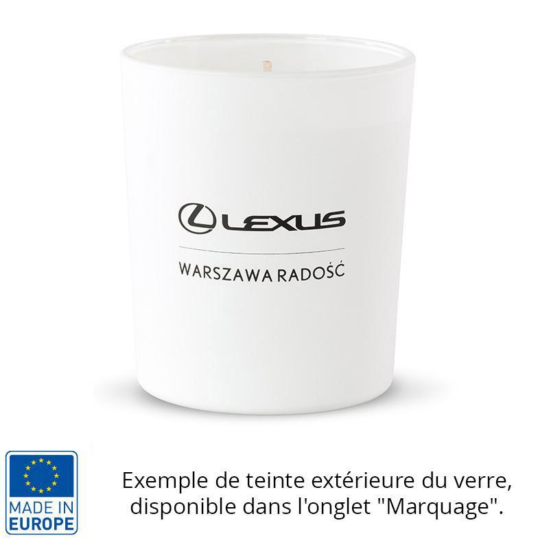 Bougie parfumée MOMA, 56h de combustion, 2 mèches et verre personnalisable.