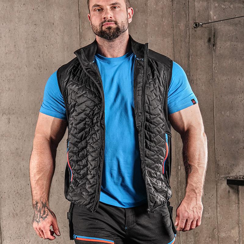 Bodywarmer matelassé, finitions contrastées, visibilité intégrée.
