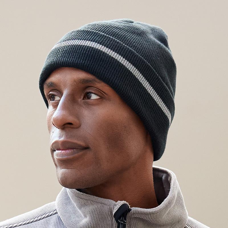 Bonnet tricoté avec bande réfléchissante, certifié OEKO-TEX®, personnalisable.