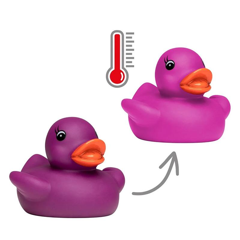 Le canard couineur à changement de couleur de la marque MBW® est un jouet interactif. Grâce à son thermochromisme, il change de couleur lorsque la température varie, passant de bleu clair à violet. Une fois refroidi, il revient progressivement à sa couleur d’origine, tandis que son bec reste orange.