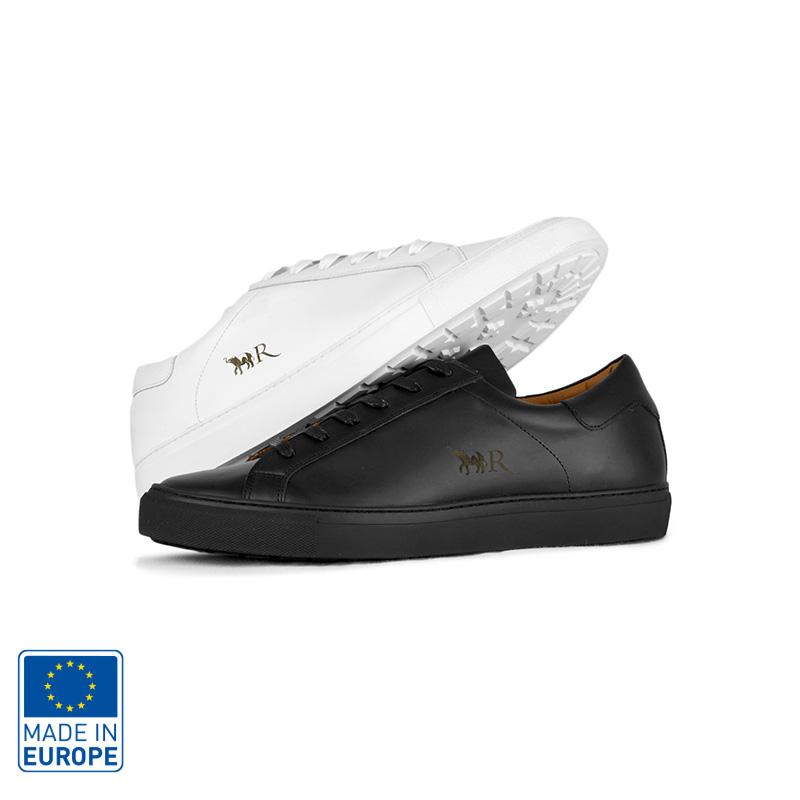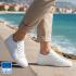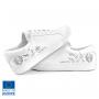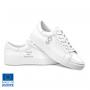 Karl & Max® baskets Skoffier unisexe en cuir doublé, adaptées aux environnements professionnels nécessitant confort et tenue soignée. Laçage prolongé avec lacets coton pour un ajustement précis. Deux versions : blanc intégral ou noir intégral.