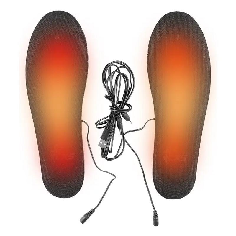 Semelles chauffantes ajustables, confort thermique durable et alimentation USB pratique.