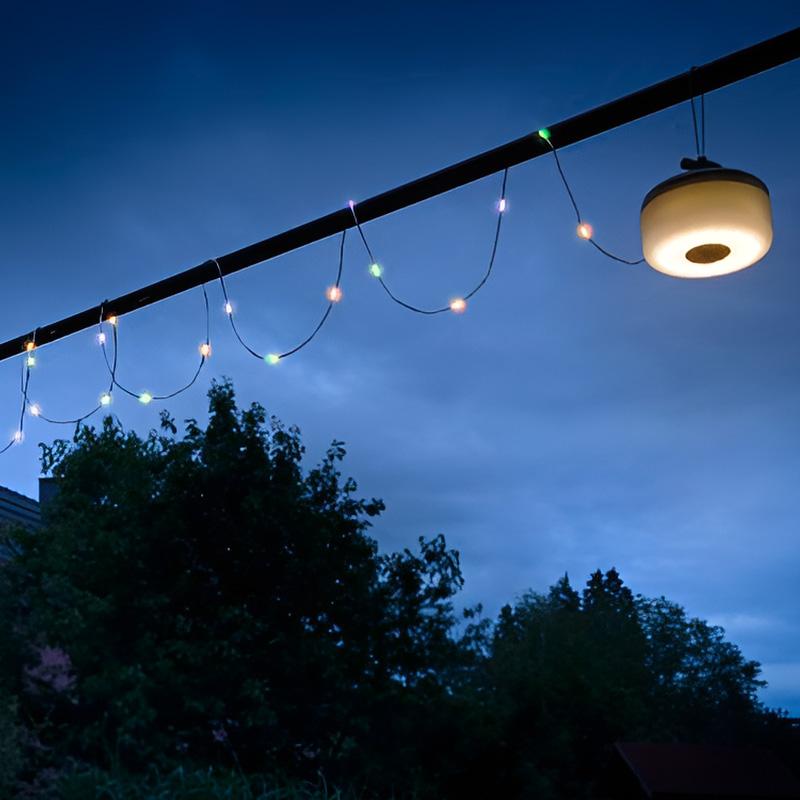 Lanterne rechargeable MetMaxx avec guirlande lumineuse rétractable 8 m et 6 modes d’éclairage.