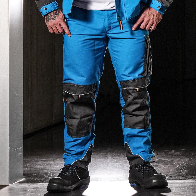 Bénéficiez d'une durabilité exceptionnelle grâce au tissu renforcé en polyester 600D aux genoux et au bas des jambes du pantalon de travail Homme CXS, gamme Sirius.