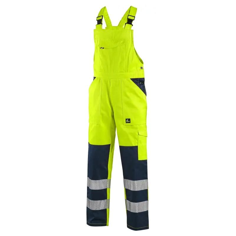 Salopette haute visibilité homme CXS® – Gamme Norwich, conçue pour allier sécurité et praticité. Sa coupe droite et ses bretelles élastiques ajustables assurent un bon maintien et un confort optimal tout au long de la journée. Le tissu coton twill en 65 % polyester et 35 % coton garantit une résistance adaptée aux environnements de travail exigeants.