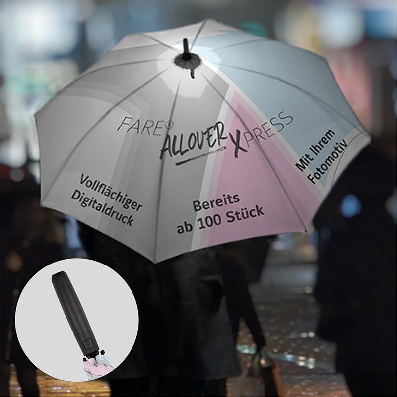 Le parapluie standard Xpress FARE® propose une personnalisation complète avec une toile en polyester pongé blanc, prête à être sublimée pour des designs sur mesure. D’un diamètre de 111 cm, il offre une protection ample et se distingue par sa technologie Windproof, combinant flexibilité et stabilité contre les vents forts grâce à un baleinage en fibre de verre et un mât en acier galvanisé.