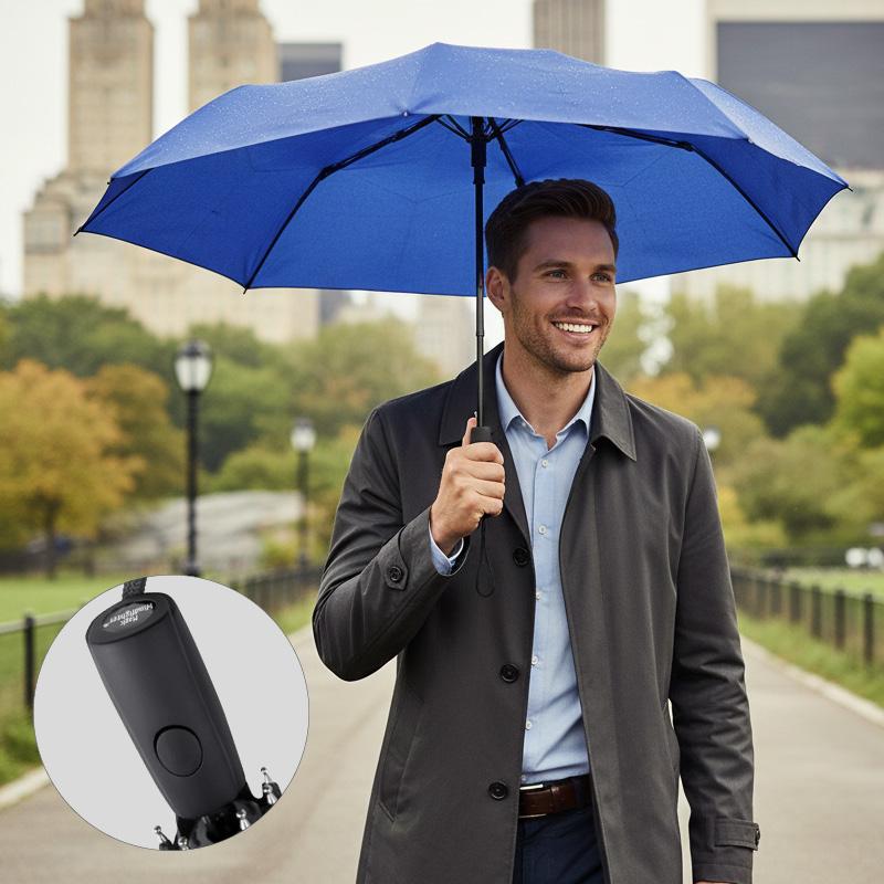 Avec une longueur repliée de seulement 24 cm et un poids de 520 g, il est facile à transporter. La poignée droite en plastique noir avec bouton et dragonne, l’ouverture/fermeture automatique, et la housse assortie avec fermeture velcro ajoutent confort et praticité.