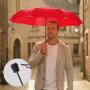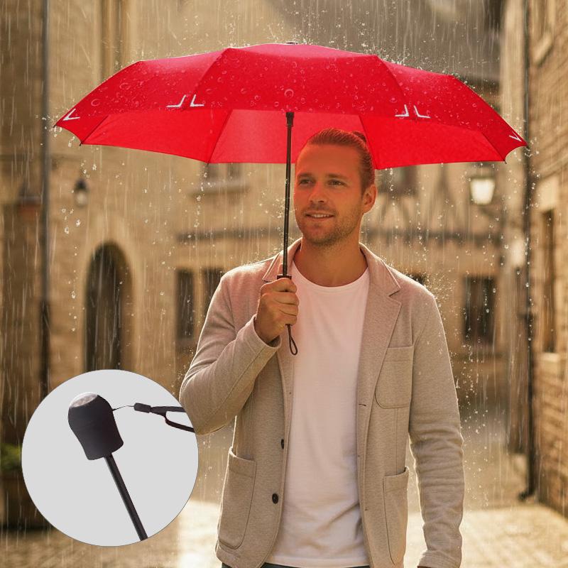 Ce modèle compact de 28 cm replié et léger (270 g) résiste aux intempéries avec un baleinage robuste en acier et fibre de verre, offrant une protection windproof contre les vents forts. Sa poignée droite en plastique noir est équipée de lampes LED rotatives, ajoutant un éclairage pratique pour plus de sécurité.