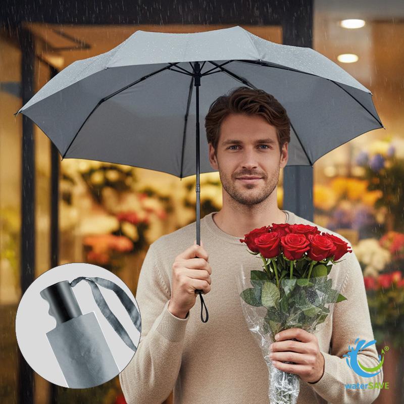 Ce parapluie manuel inclut une languette velcro et un embout de sécurité coulissant. Il contribue à une réduction des déchets et de l’empreinte environnementale grâce à la technique Watersave.