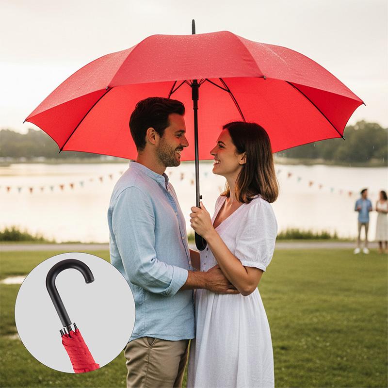 Doté d’une poignée canne en plastique noir confortable et d’une languette de fermeture en velcro, ce parapluie combine ergonomie et praticité. Idéal pour les golfeurs ou les duos cherchant une solution de protection efficace par tous les temps.