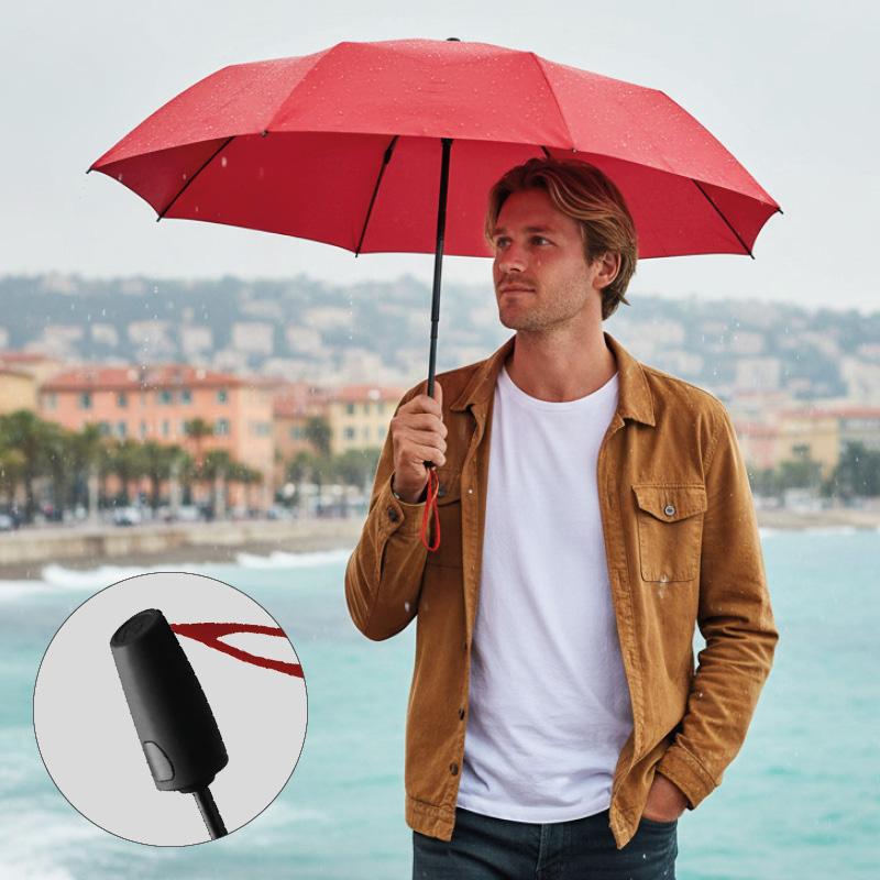 Compact (31 cm replié) et léger (395 g), il se transporte facilement au quotidien. Son mât en acier et sa poignée droite en Soft-Touch avec bouton d’ouverture automatique garantissent confort et simplicité d’utilisation.