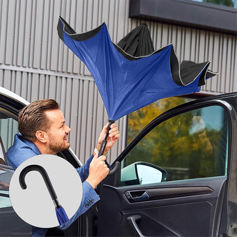 Ce modèle intègre une poignée canne en Soft-Touch pour un confort de prise en main, ainsi qu'une languette velcro pour un maintien sécurisé. Sa fermeture inversée empêche l’eau de s’écouler, idéal pour les déplacements urbains.
