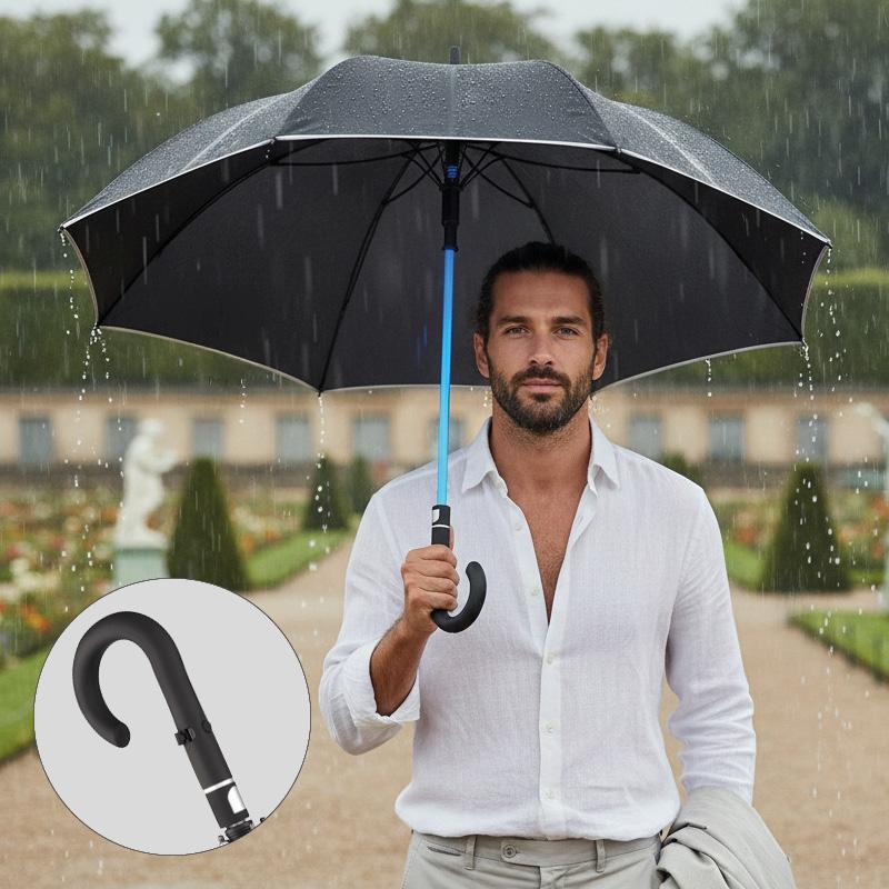 Équipé d’un mât transparent avec éclairage LED à sept couleurs, il est alimenté par une batterie rechargeable en Lithium-Ion (câble micro USB inclus), ajoutant une touche pratique et lumineuse pour les déplacements nocturnes. La poignée canne Soft-Touch assure une prise confortable.