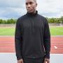 Le col montant avec protège-menton et la fermeture zippée avec rabat intérieur renforcent le confort par temps frais. Deux poches latérales zippées permettent de sécuriser les effets personnels pendant l’activité.