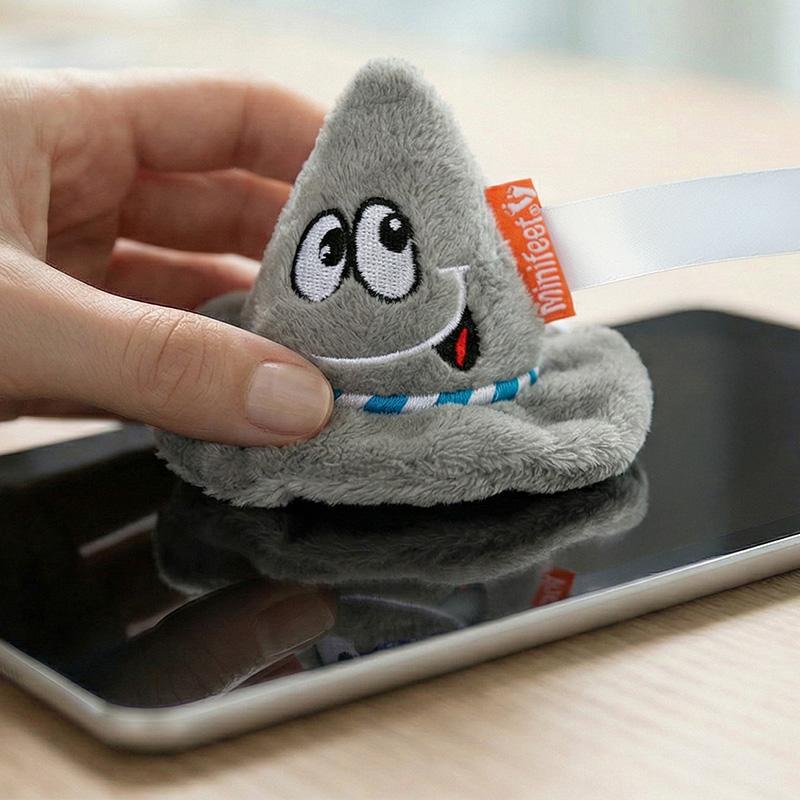 Le Schmoozies® bavarois de MBW® est une peluche unique en forme de chapeau bavarois conique, idéale pour nettoyer les écrans de téléphones et autres appareils grâce à sa face inférieure en microfibre. Son design festif inclut un large bord gris et une bande brodée bleue et blanche, évoquant l’esprit des fêtes bavaroises.