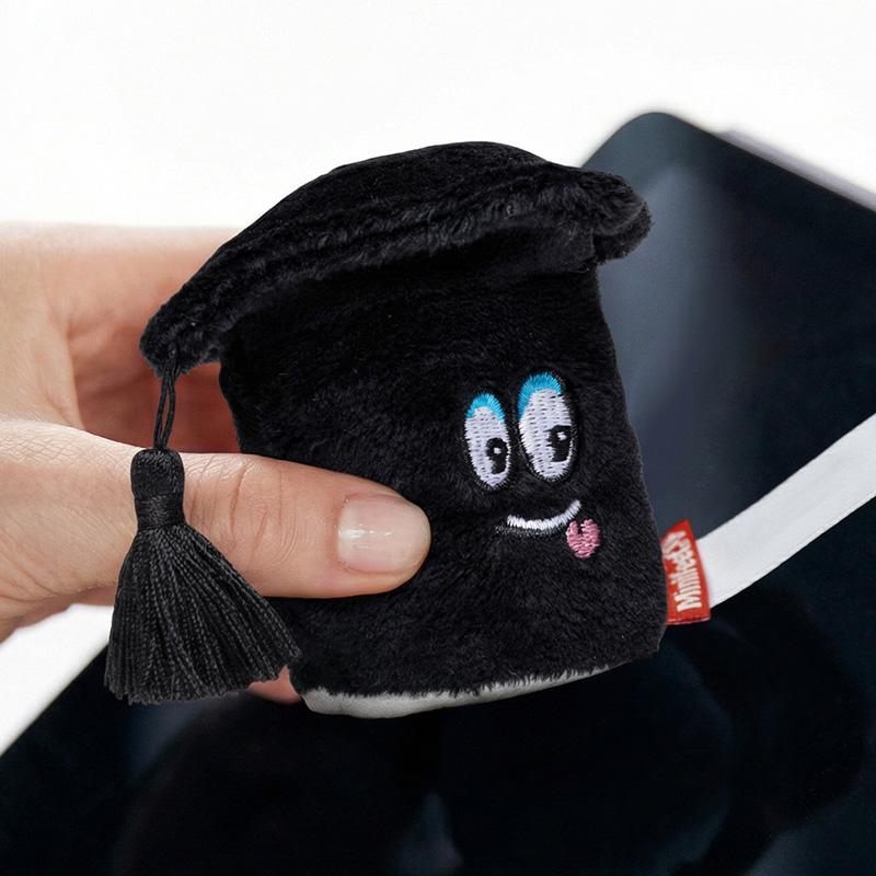 Cette peluche noire est ornée d’un gland suspendu et de broderies colorées, symbolisant la réussite académique. Idéale pour féliciter un diplômé ou marquer la fin des études, elle allie originalité et utilité. Fabriquée en polyester avec une garniture en granulés de PET, elle est lavable à 30°C.