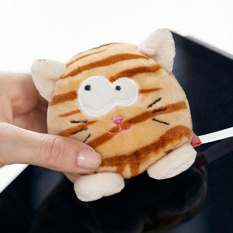 Le Schmoozies® chat de MBW® est idéal pour nettoyer les écrans de téléphones et tablettes grâce à son dessous en microfibre. Ce chat en peluche marron, avec des rayures tigrées, des oreilles et pattes claires, et une queue rayée, séduit par son look curieux et rigolo avec des yeux expressifs.