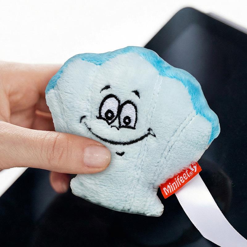 La coquille Schmoozies® de MBW® est une peluche humoristique et pratique. Avec son design en forme de coquillage festonné bleu clair, bordé de peluche douce bleu ciel, et son visage souriant brodé, elle allie charme et fonctionnalité.