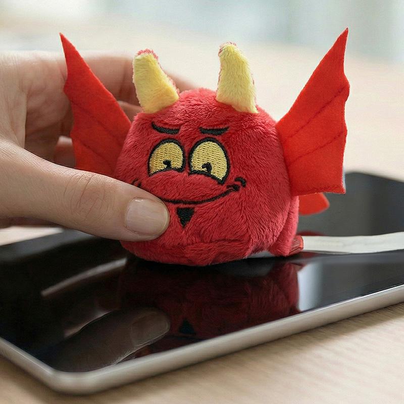 Le Schmoozies® diable de MBW® est une peluche rouge vif originale, parfaite pour nettoyer les écrans de téléphones et autres appareils grâce à sa face inférieure en microfibre. Son design audacieux inclut une longue queue rouge en forme de flèche, des cornes rouges et jaunes, des ailes de chauve-souris ouvertes et des yeux jaunes brodés, idéal pour Halloween ou les amateurs de fantaisie.