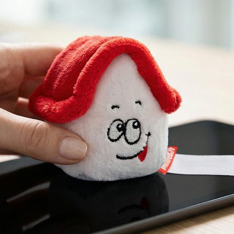 Le Schmoozies® maison de MBW® est une peluche pratique et originale, idéale pour nettoyer les écrans de téléphones et autres appareils grâce à sa base en microfibres. Son design accueillant inclut un toit rouge ou noir, des portes et fenêtres brodées, et une expression faciale effrontée qui lui donne un charme unique.