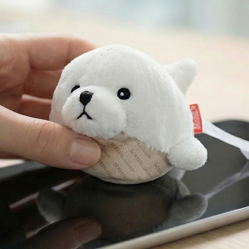 Le Schmoozies® phoque en peluche de MBW® est un compagnon pratique et adorable. Ce phoque blanc au look attendrissant, avec ses yeux, nez et moustaches brodés, est conçu pour nettoyer les écrans de téléphones et autres appareils grâce à sa base en microfibre.