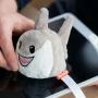 Cette peluche en forme de requin gris et blanc affiche un design unique avec une bouche brodée pleine de dents et un aileron dorsal. Compact et léger, il mesure 7 cm de largeur et pèse 38 g. Personnalisable grâce à une étiquette attachée, il constitue un cadeau pratique et amusant.
