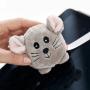 Avec un diamètre de 7 cm, elle tient facilement dans la main. Cette souris grise aux oreilles roses est dotée de détails brodés en noir, comme les yeux, le nez, la bouche et les moustaches, ainsi que d'une queue et de petites pattes assorties.