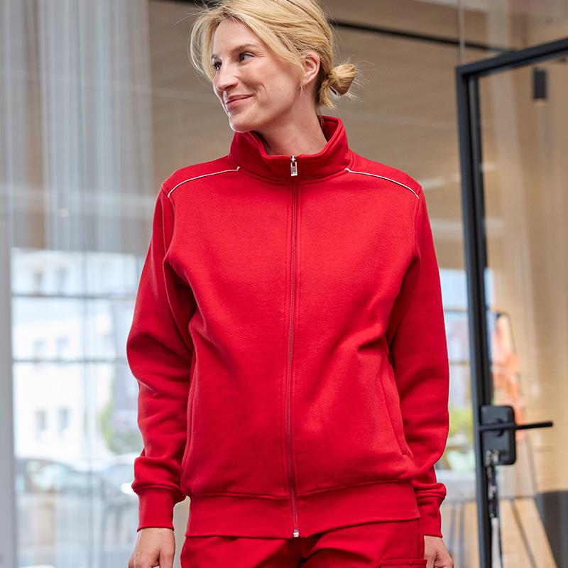 Le sweat zippé pour femme avec col montant Daiber® est conçu pour offrir confort et durabilité. Fabriqué en tissu de 290 g/m² avec un mélange de 70 % coton et 30 % polyester, il est résistant et facile à entretenir. Le coton peigné ring-spun garantit une douceur optimale.