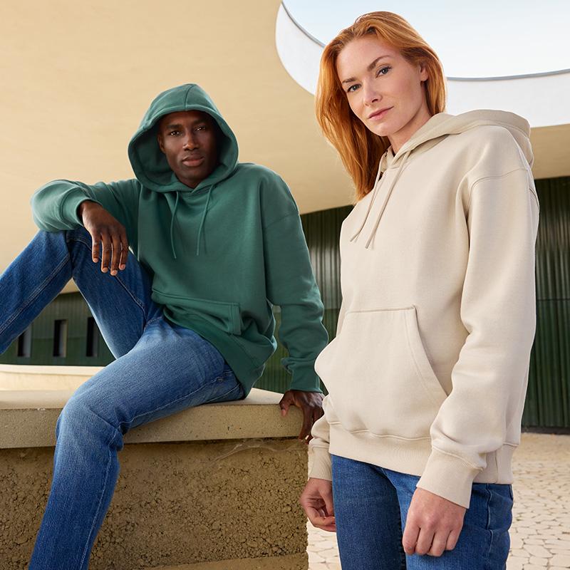 Coton bio & RPET, intérieur molletonné, coupe oversize unisexe, certificat Bio Organic Standard Blended