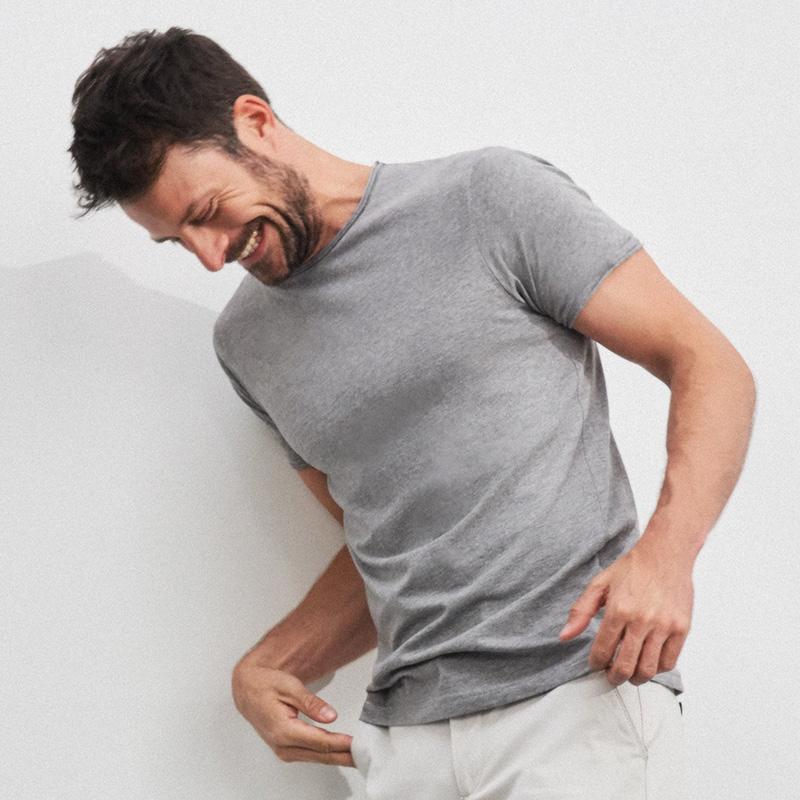 Adoptez une mode écoresponsable et tendance avec notre t-shirt pour hommes en 100% coton bio et ourlet roulé.