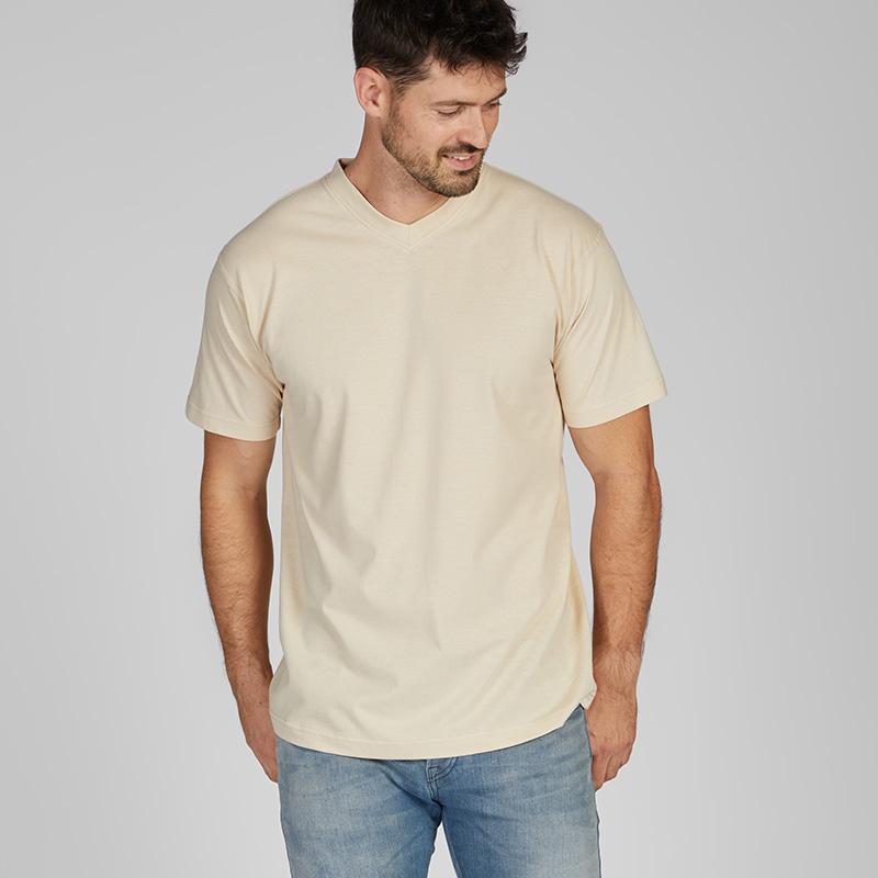 On aime Ce t-shirt confortable en single jersey offre une douceur exceptionnelle et une grande durabilité, avec un col en V pour un style épuré et un ajustement optimal..