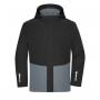 Veste de travail hardshell unisexe Daiber®, conçue pour une protection fiable en conditions exigeantes. La coupe ergonomique avec dos rallongé, le col montant et la capuche amovible doublée, compatible avec le port d’un casque de chantier, assurent confort et liberté de mouvement.