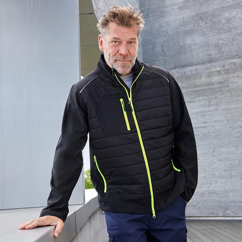 La veste pour homme de Daiber® combine des tissus mélangés en polyester recyclé pour une durabilité et une praticité optimales. Dotée d'une construction en softshell avec des inserts cousus à l'avant et à l'arrière, elle est facile d'entretien et assure une protection efficace contre les intempéries.