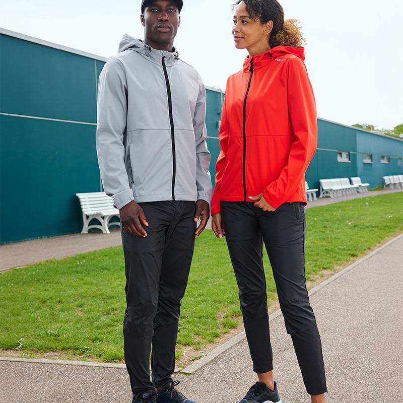 La matière softshell à membrane TPU 3 couches est coupe-vent et imperméable, avec une colonne d’eau de 5 000 mm. La fermeture zippée avec rabat intérieur, les deux poches latérales zippées et les deux poches intérieures apportent fonctionnalité et praticité au quotidien.